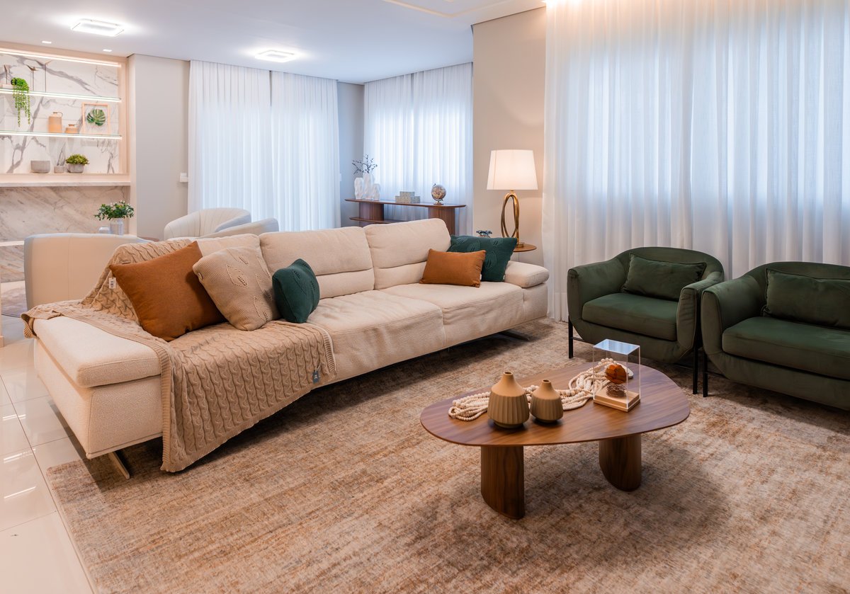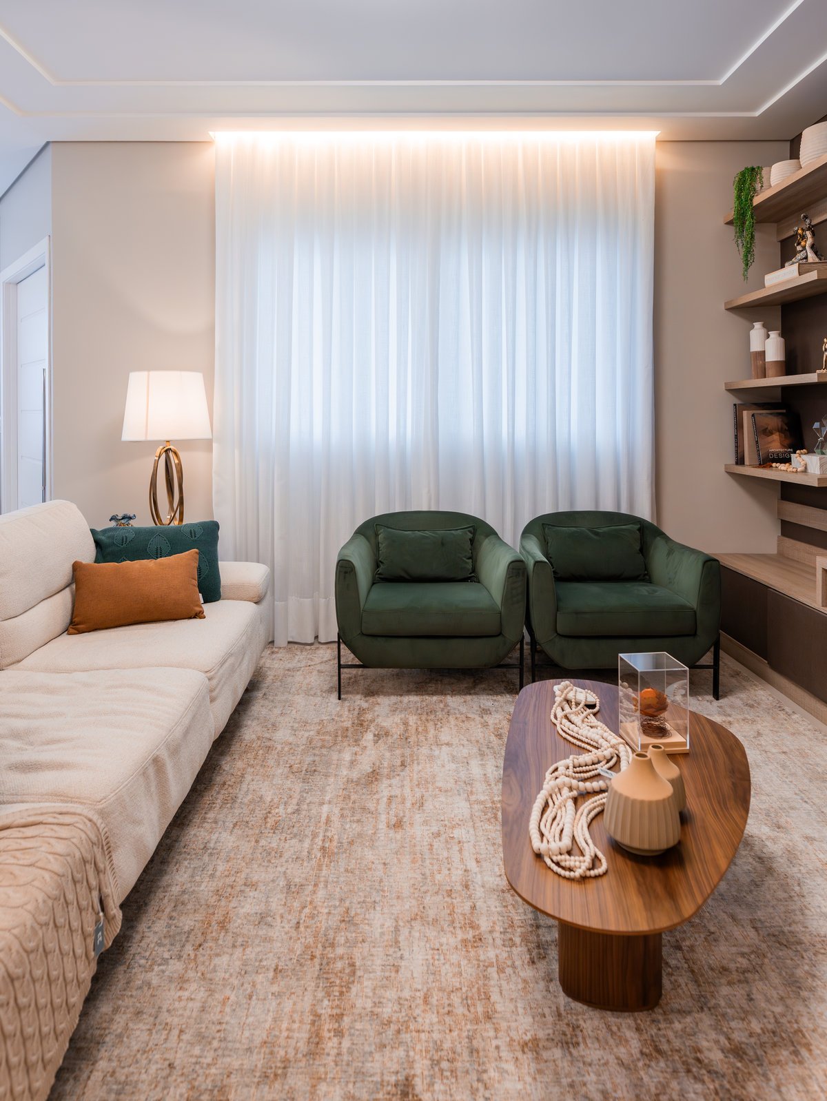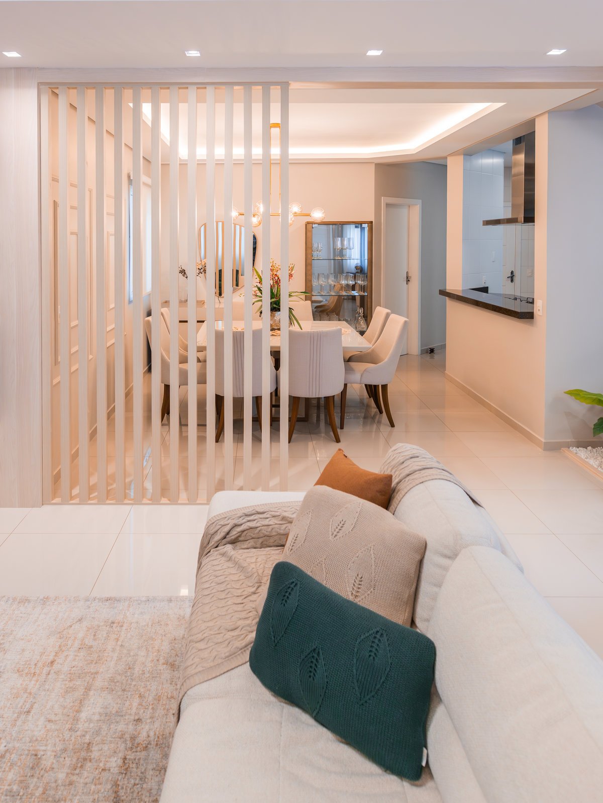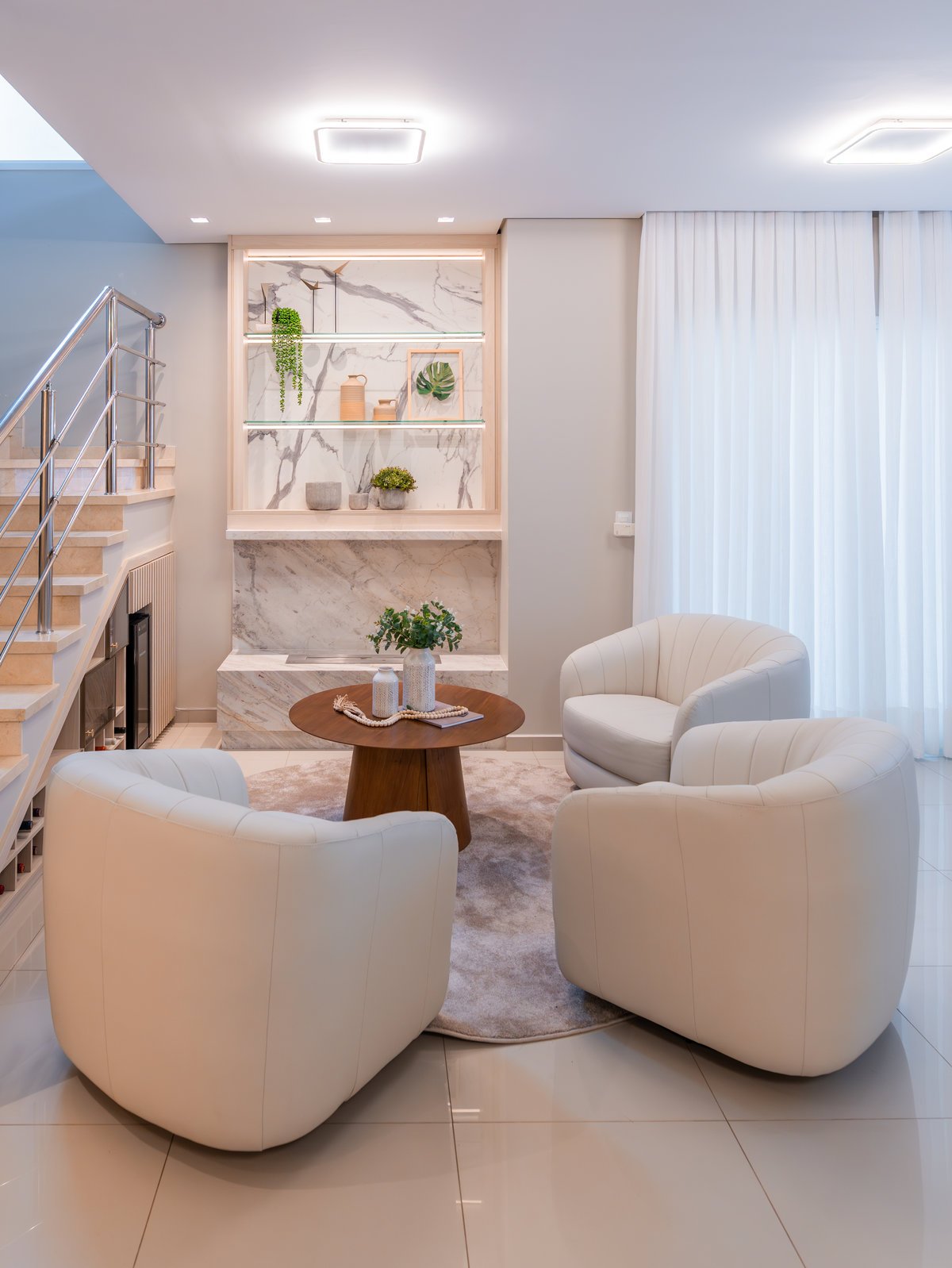 Captamos a essência de nossos clientes neste projeto que trouxe vida aos espaços integrados. Trouxe textura, cores, luz e também função, visto que agora eles tem uma adega embaixo da escada e uma lareira na sala de estar.